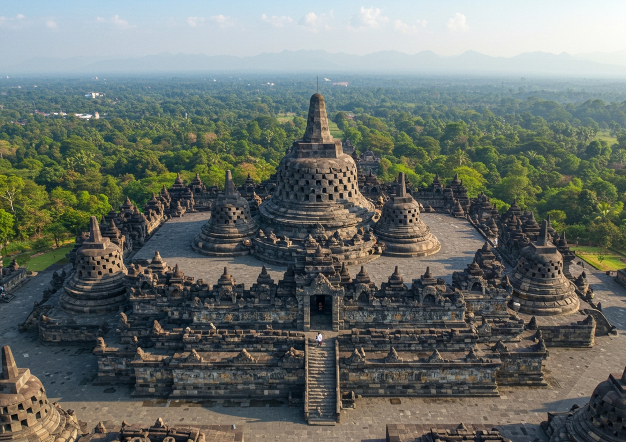 世界最大佛教遺跡,建於8–9世紀,以九層疊塔結構象徵佛教宇宙觀。塔身雕刻超過2,600幅浮雕與500座佛像,展現宏偉的宗教藝術與精湛石雕工藝。清晨登頂可眺望群山與火山日出,是旅人必訪的心靈地標。