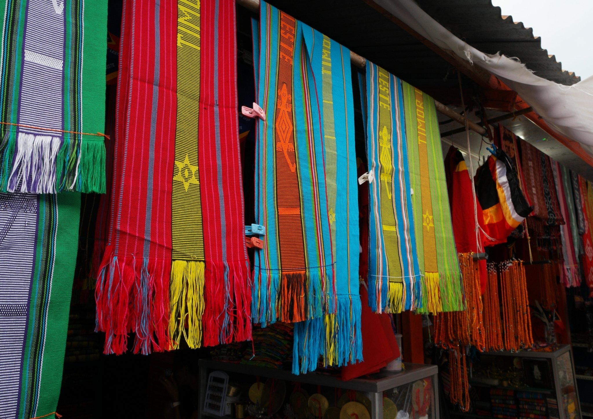 Tais 是東帝汶最具代表性的傳統手工織布,2021 年被列入 UNESCO 非物質文化遺產。織布以鮮豔色彩與幾何圖案聞名,承載著部族身分、社會地位與儀式用途等文化意涵。走訪當地織布市場,可以近距離欣賞婦女手工操作織機的過程,感受代代相傳的工藝魅力,也是旅客帶回的珍貴文化紀念品。
