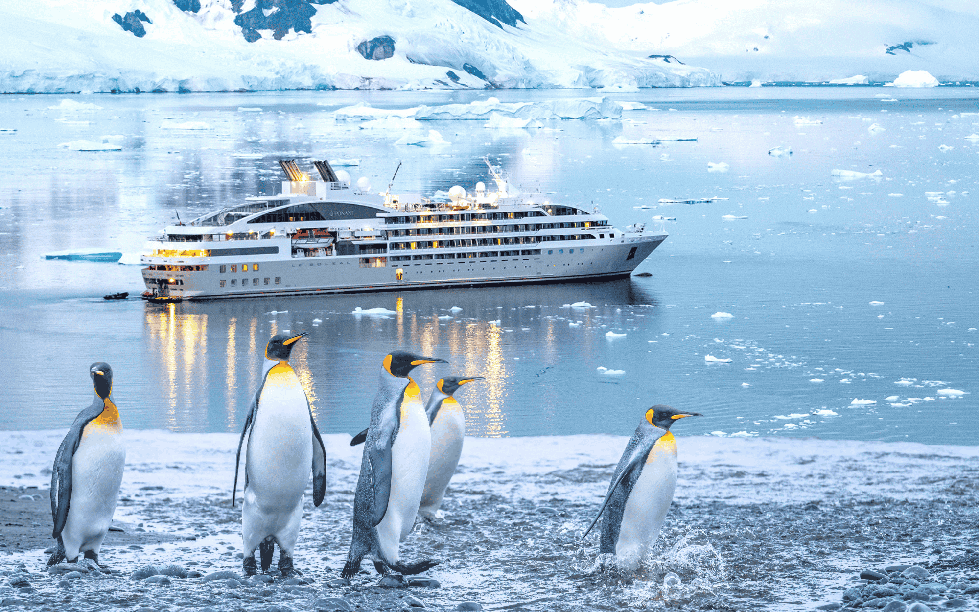 我們將駛入極圈,穿越重重冰山與浮冰,由破冰的猛烈咆嘯中打破冷冽的寂靜,觀賞冰川的壯麗景色