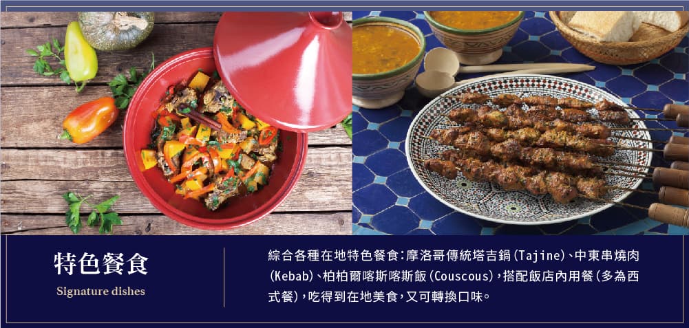 有如沙漠中的綠洲之城,像是走進一千零一夜的電影布景中!沙漠中住宿一般給人克難、不便的印象,這兩間連鎖沙漠客棧卻是沙漠中的渡假村,擁有泳池、SPA,熱情提供在地餐食,走進撒哈拉,您也可以得到舒適的夜宿,不用過得苦哈哈。