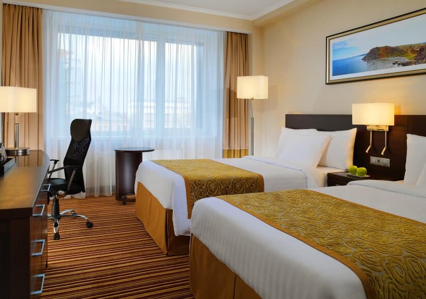 伊爾庫茨克市中心萬豪酒店擁有精美的住宿環境和出眾的服務,為商務和休閒旅客提供輕鬆的家外之家。位在市中心的地方,步行即可抵達基洛夫廣場,安加拉河和戲劇院;距離聯合國教科文組織世界遺產地貝加爾湖僅有40英里,這是世界上最大的淡水湖。我們的208間寬敞的酒店客房和套房提供豪華寢具,迷你冰箱,光線充足的工作區和高速網路連接。美味的用餐選擇包括Mesto Vstrechi餐廳以及悠閒的Cedar Bar酒吧。伊爾庫茨克萬豪酒店恭候難忘的酒店體驗!