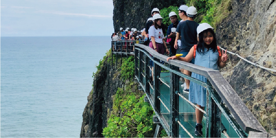 沿著風景區的環狀步道,不僅可飽覽石梯坪的地質景觀,太平洋的壯闊浩瀚景象也能盡收眼底。