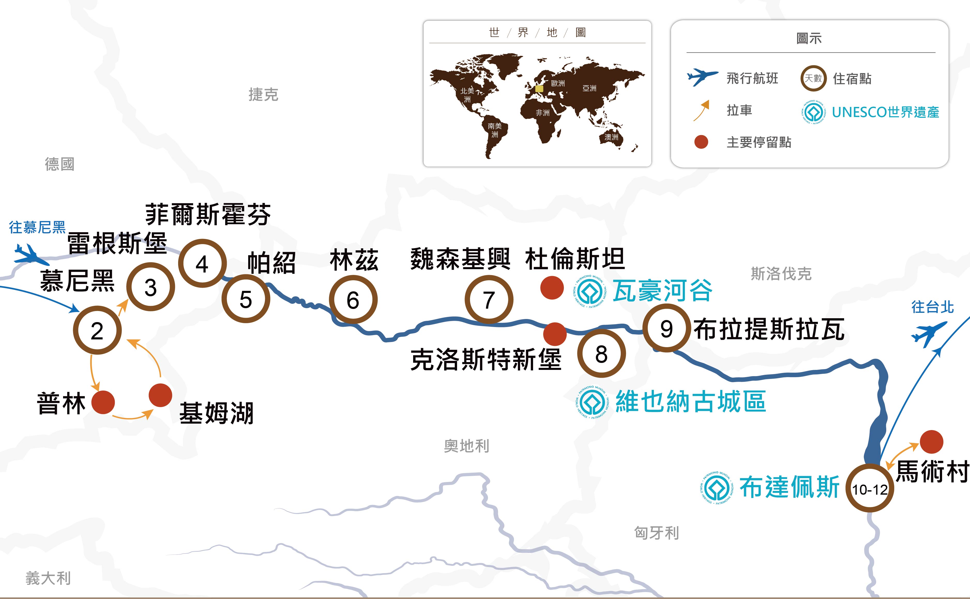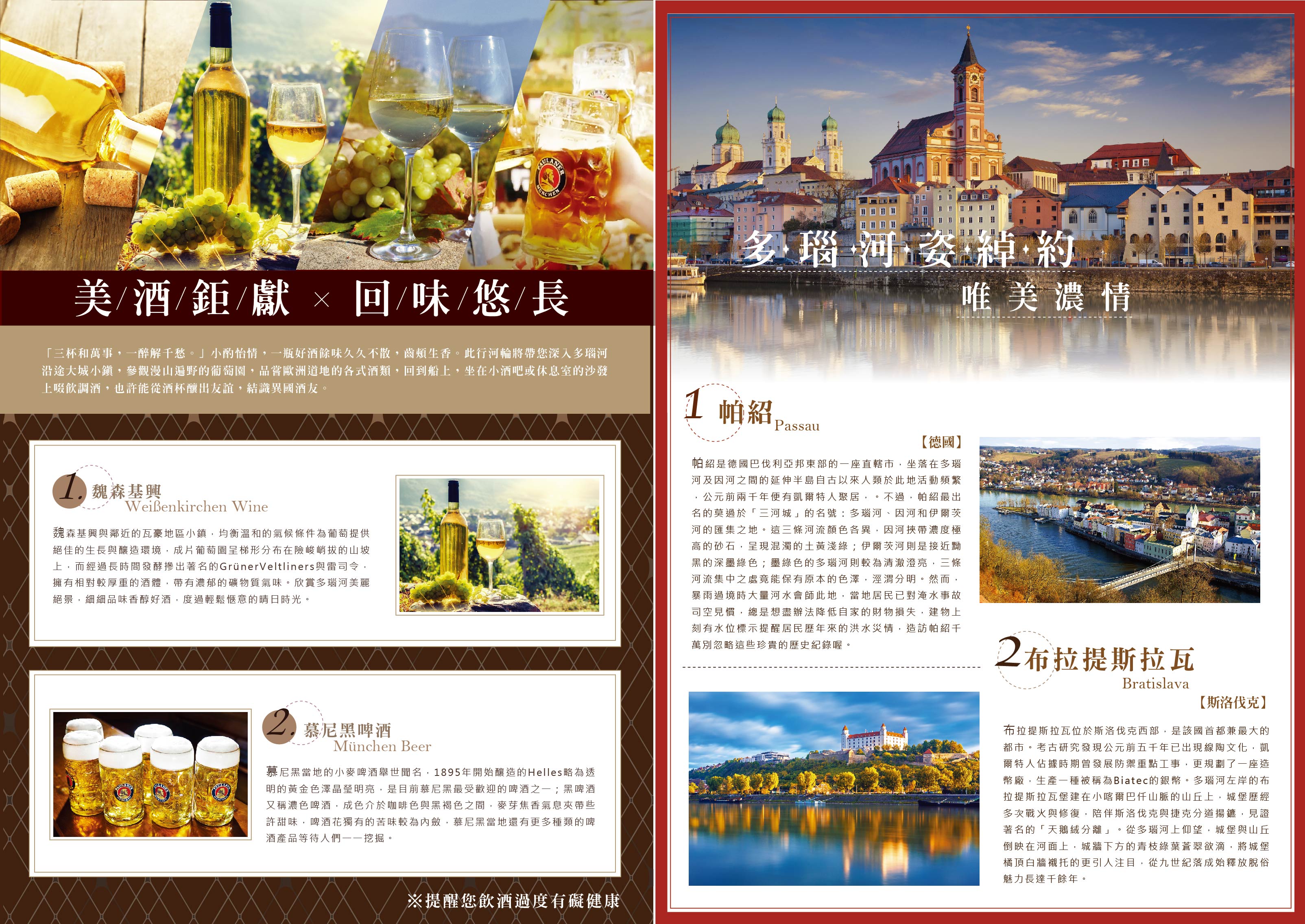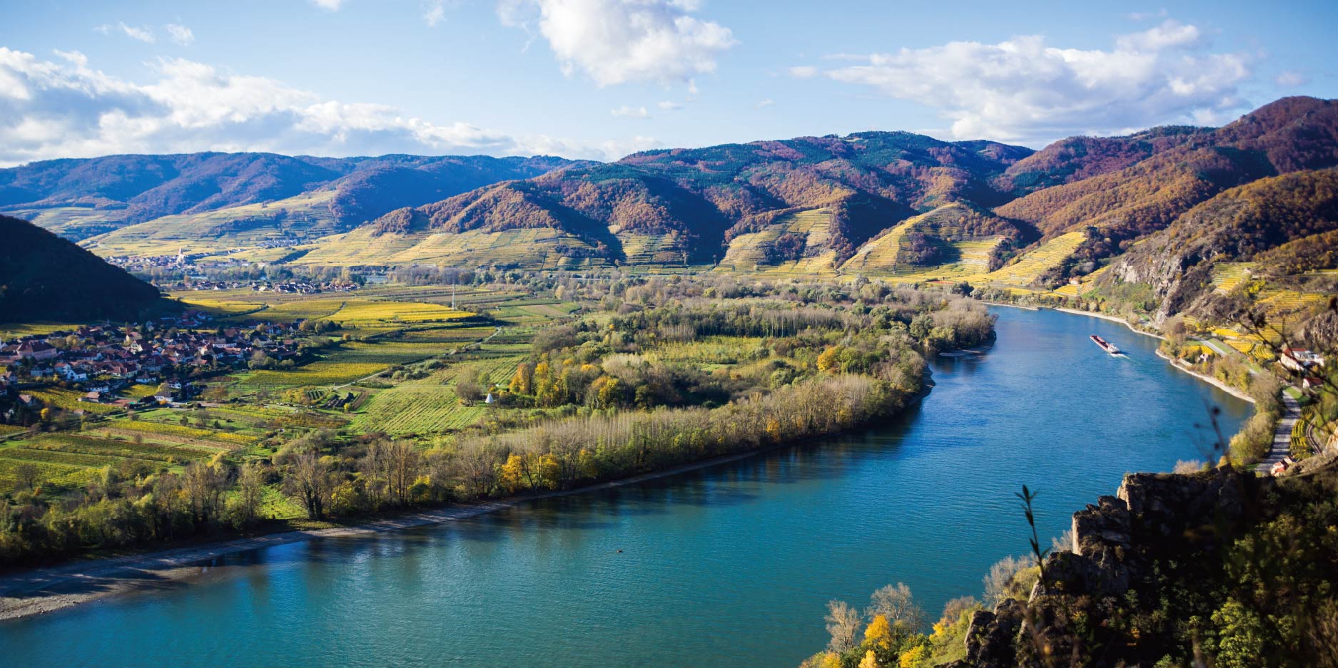 瓦豪河谷屬於多瑙河流域,位於奧地利梅爾克與克雷姆斯之間,全長約30公里。沿途教堂和民居等建物散落岸邊,城堡從蓊鬱茂盛的樹林中探出頭來,斜坡上的葡萄園綿亙不絕,此等美景令人人傾心嚮往,被譽為多瑙河最美的河段,此次將搭乘河輪享受這悠閒寧靜的鄉間風光。