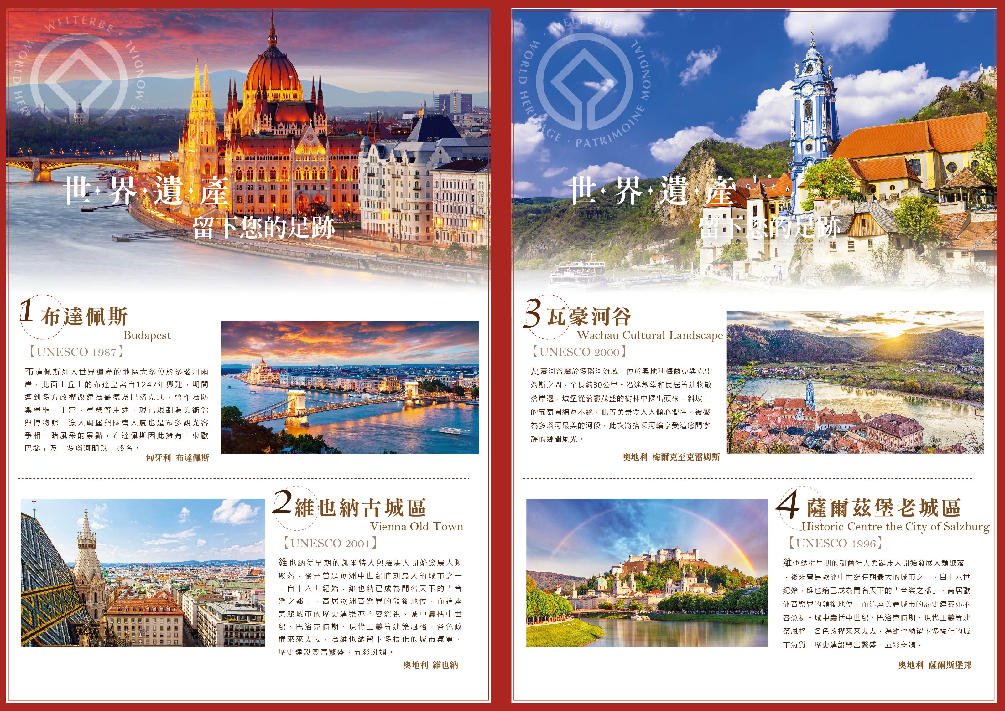 維也納從早期的凱爾特人與羅馬人開始發展人類聚落,後來曾是歐洲中世紀時期最大的城市之一,自十六世紀始, 維也納已成為聞名天下的「音樂之都」,高居歐洲音樂界的領銜地位,而這座美麗城市的歷史建築亦不容忽視。城中囊括中世紀、巴洛克時期、現代主義等建築風格,各色政權來來去去,為維也納留下多樣化的城市氣質,歷史建設豐富繁盛、五彩斑斕。
