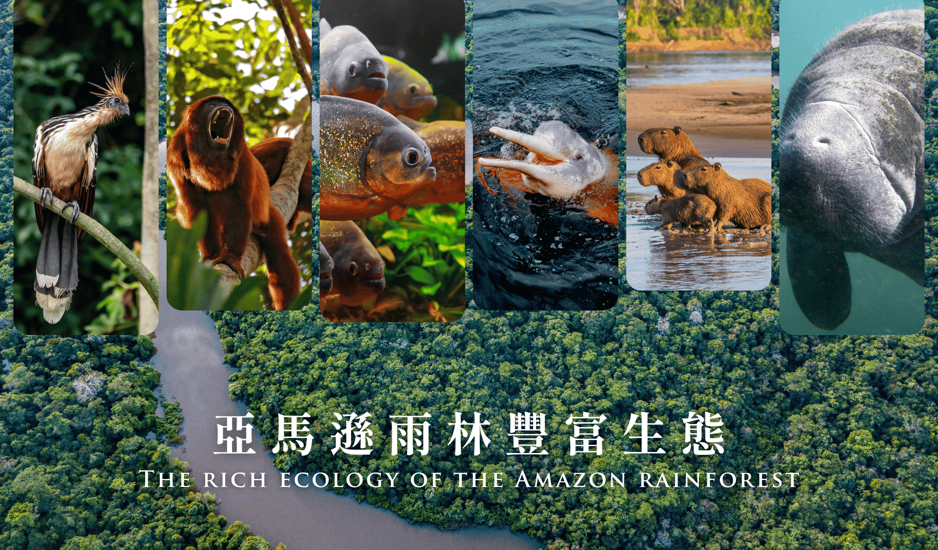 亞馬遜河流域包括亞馬遜雨林,佔地近三百萬平方英里,與九個國家的邊界重疊:巴西、哥倫比亞、秘魯、委內瑞拉、厄瓜多、玻利維亞、圭亞那、蘇利南和法屬圭亞那。據估計,該地區擁有世界上十分之一的動物物種。它們包括從猴子、巨嘴鳥到食蟻獸和毒箭蛙的各種動物。