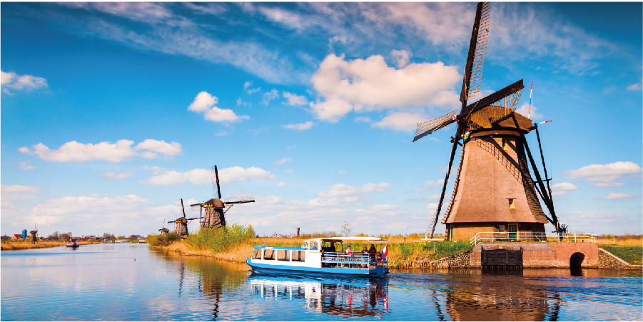 坐落於萊克河與諾德河交匯處,為了順利排水,於1740年打造由19座風車組成的水利設施,是荷蘭規模最大的風車系統。風車沿著兩條水道分布,中間夾著筆直的步行道,放眼望去綠草如毯,晴空藍的耀眼奪目。