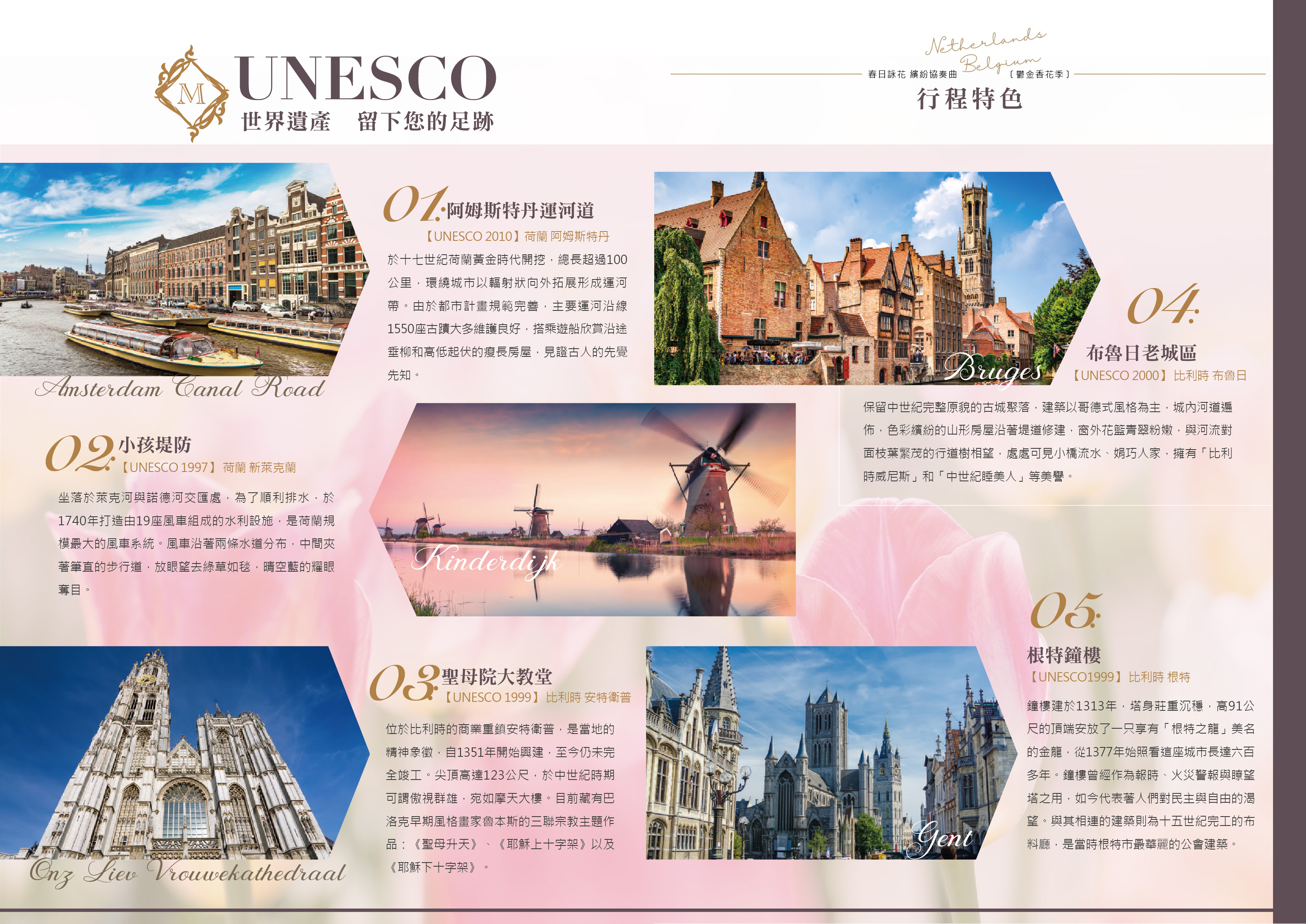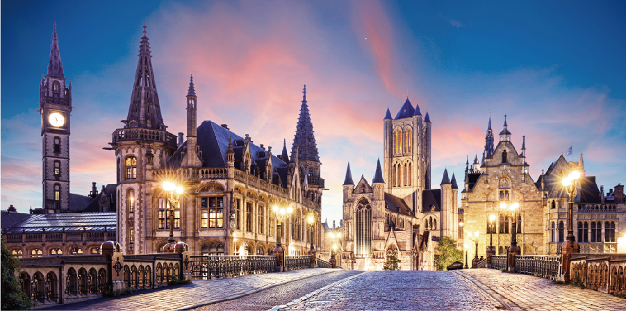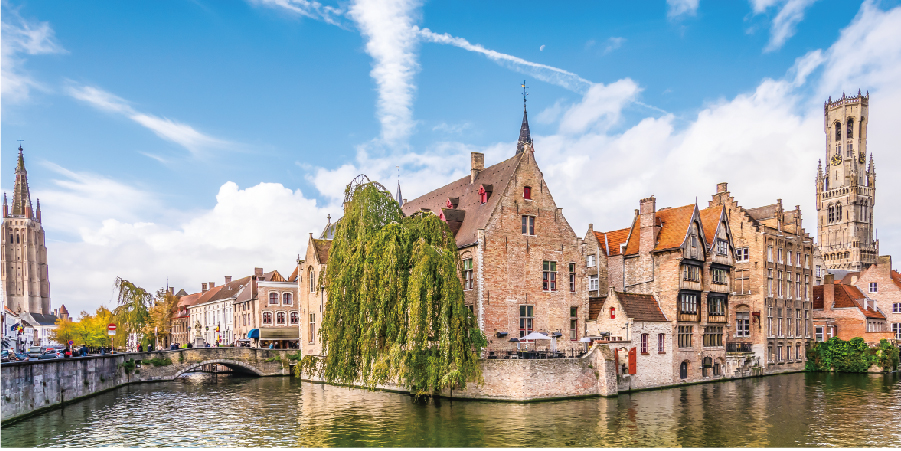 保留中世紀完整原貌的古城聚落,建築以哥德式風格為主,城內河道遍佈,色彩繽紛的山形房屋沿著堤道修建,窗外花籃青翠粉嫩,與河流對面枝葉繁茂的行道樹相望,處處可見小橋流水、娟巧人家,擁有「比利時威尼斯」和「中世紀睡美人」等美譽。