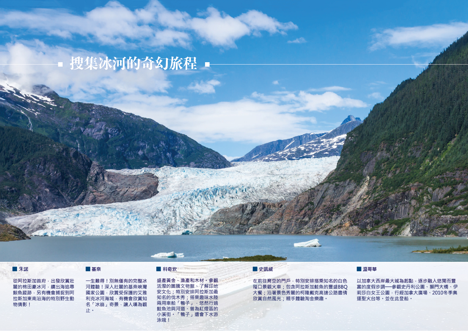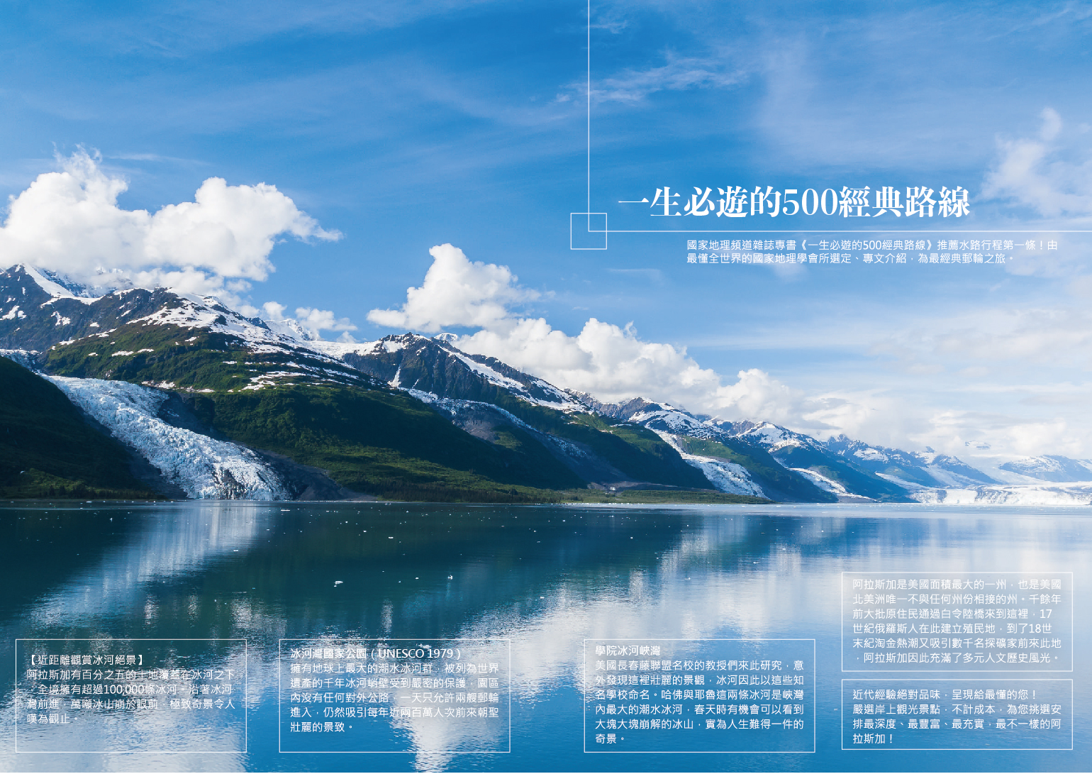 一生難得!別無僅有的完整冰河體驗!深入壯麗的基奈灣國家公園,欣賞受保護的艾雅利克冰河海域,有機會欣賞知名「冰崩」奇景,讓人嘆為觀止。