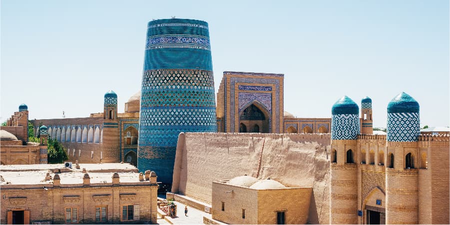 希瓦被當地人稱為「方舟皇城」據說希瓦的建城者在絕望中沈睡時,夢到300支火矩,他醒來後,一個黃金都市盛在方舟上呈現在他眼前,這就是希瓦。希瓦內城「伊欽卡拉」已登載世界遺產,除了18世紀重建的鋸齒形磚牆,附屬在城牆內的112根華柱,據說從10世紀流傳至今。