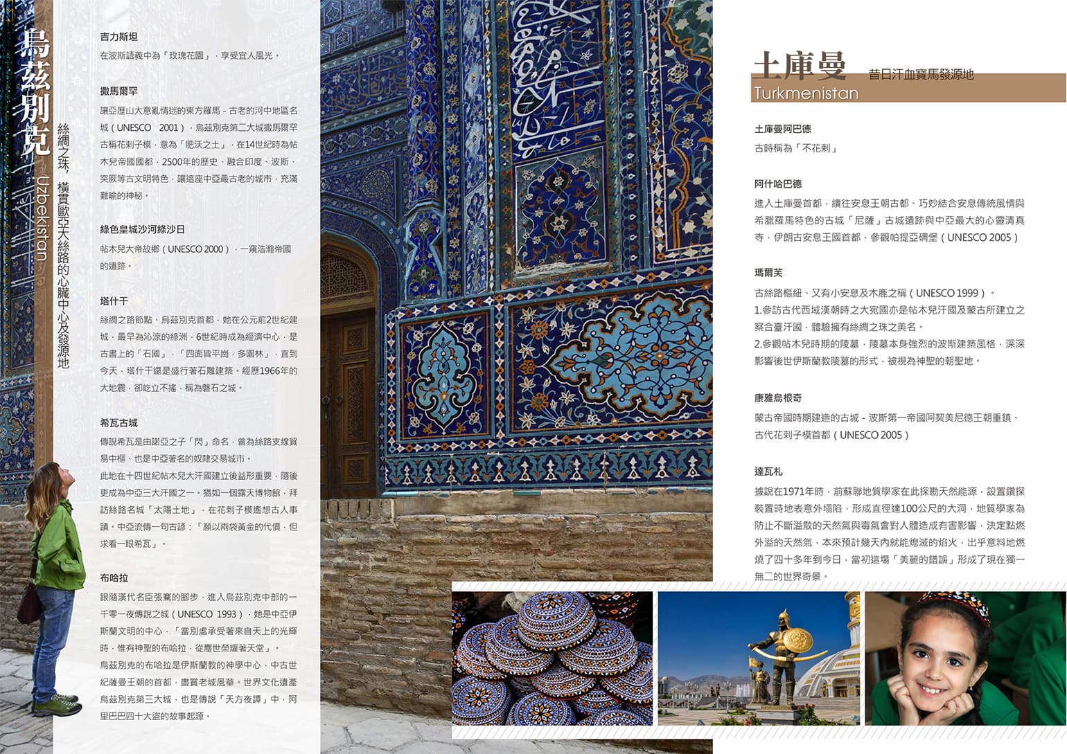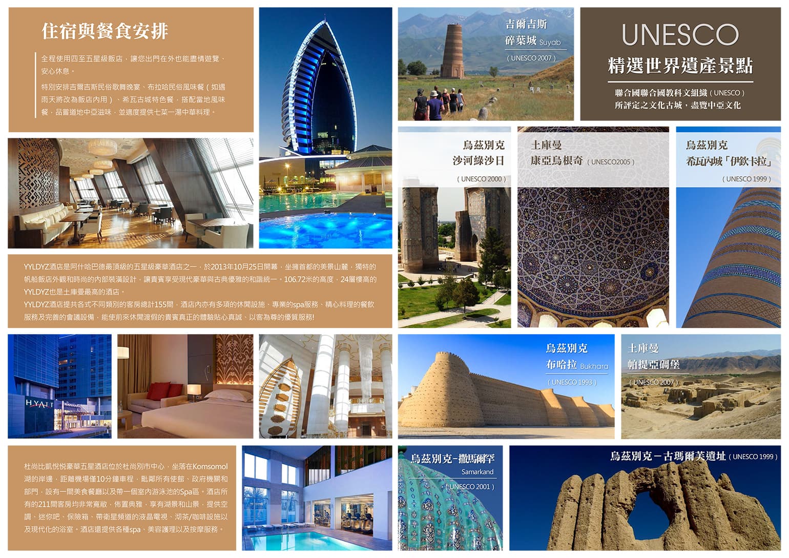 跟隨漢代名臣張騫的腳步,進入烏茲別克中部的一千零一夜傳說之城,她是中亞伊斯蘭文明的中心,「當別處承受著來自天上的光輝時,惟有神聖的布哈拉,從塵世榮耀著天堂」。烏茲別克的布哈拉是伊斯蘭教的神學中心,中古世紀薩曼王朝的首都,盡賞老城風華。世界文化遺產烏茲別克第三大城,也是傳說「天方夜譚」中,阿里巴巴四十大盜的故事起源。
