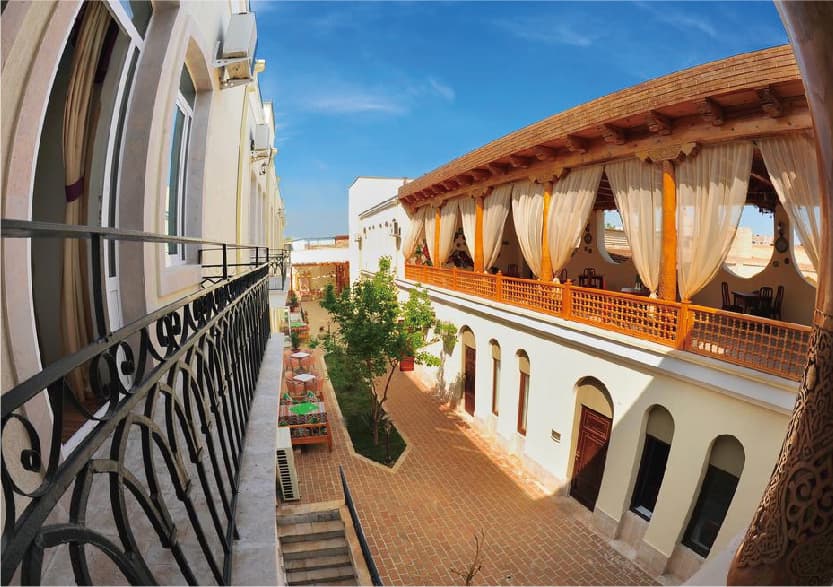 Hotel Malika - Bukhara酒店是一家豪華舒適的酒店,位於布哈拉老城區的中心,是一個細心優質服務的四星級酒店。並提供多元的語言服務,包括俄語和英語以及土耳其語。酒店為客人提供一流的服務和最現代化的設施。由一座兩層建築,三個街區組成。配有空調,冷熱水淋浴/ 浴缸,電話,無線網絡,保險箱,互動電視和迷你吧。酒店還設有露台,家庭間和夏季酒吧。餐廳供應國內和西式美食。酒吧提供各種飲品。擁有豐盛的自助早餐,包括國內和歐洲菜餚。